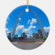 Foto do arco de entrada na Rua Louis, Missouri de um barco no rio Mississippi.
