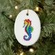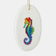 Articulação artificial, brilhante, arco-íris, cavalo de mar poligonal sobre fundo branco. Tatuagem brilhante.