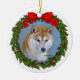 Desenho de um cão Shiba Inu vermelho em um enfeite de Natal por Glenda S. Harlan.