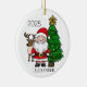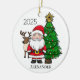 Papais noeis personalizados, renas, Enfeites de natal é uma decoração festiva que pode ser personalizada com um nome, ano e mensagem no verso. O ornamento apresenta um adorável Papai Noel em seu terno vermelho tradicional cercado por uma rena e uma árvore de Natal. O nome, o ano e a mensagem na personalização traseira acrescentam um toque especial, fazer o ornamento uma manutenção única que será divertido tirar da árvore e pendurá-la a cada ano.