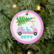 Ornamento De Cerâmica Árvore de Natal do Carrinho de Golfe Rosa Personal