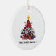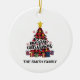 A árvore de Natal de xadrez vermelha com presentes embaixo é a peça central deste ornamento de decoração simples, mas na moda, pendurado em férias. Todos os elementos, incluindo os textos, são personalizáveis. Se quiser mudar o design para outro produto ou tamanho, faça os ajustes necessários para ajustado dos novos itens.