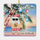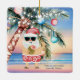 Papais noeis deixaram o Polo Norte para trás e estão em férias tropicais, pegando seu luau! 🎅 🌴 Este Enfeites de natal cerâmico divertido apresenta uma cena solar de praia em aquarela com Papais noeis esportivos de shorts havaianos, jogando um coquetel de abacaxi ao lado de uma palmeira decolada em luzes. A frente lê "Mele Kalikimaka" (personalizável), enquanto que a parte de trás permite personalizá-la com sua própria mensagem festiva — como "Aloha! Queijos Quentes dos Palmers." Perfeito para aparar sua árvore, dar a amantes de praia ou adicionar vibrações de férias à decoração de férias. 🌺 🎄