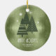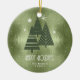 Este ornamento cerâmico apresenta um belo arranjo de árvores de Natal estilizadas e flocos de neve em verde-escuro sobre um fundo verde-texturizado e musgo. Foi fornecido um texto "Feriados Felizes" opcional e um modelo para adicionar seu nome e/ou outro texto. Procure ID861 a ID864 para ver opções de cores adicionais e outros produtos neste conjunto de design de Natal moderno.