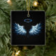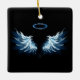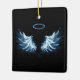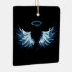 Ornamento De Cerâmica Asas Anjos Azuis Brilhantes em fundo preto