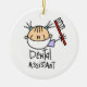 Uma figura fêmea assistente dental da vara com máscara protectora e uma escova de dentes vermelha em t-shirt do assistente dental, camisolas, hoodies, canecas, cartões, etiquetas, sacolas, chaveiro, botões, ímãs, lembranças, ornamento, e outros roupa e presentes do assistente dental.