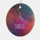 Este design de ornamento é feito de nebulosas cor-de-rosa, azuis e laranja para formar uma galáxia. No topo da galáxia está a constelação da estrela Taurus. Isso faz um presente excelente para qualquer Taurus!