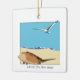 Ornamento com caranguejo-ferradura-de-bruxas bidimensional com imagem de casco voando sobre a praia com ondas. Data Personalizável no retorno. Atlantic City, Nova Jersey no século, na parte inferior.