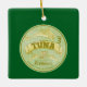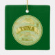 Uma ilustração do estilo pop da tampa de uma lata de atum. Este é desenhado em vetor e tem a aparência de um poster de publicidade retrógrada. Tem atum e é desenhado em tempos de verde e amarelo. Um design para qualquer um que ama peixe enlatado/conservado.