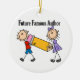 Um garoto e uma garota com figura de palito carregar um enorme lápis amarelo e o texto diz "O futuro autor famoso", um design bonito em T-shirts, canecas, cartões, sacos de tote e outros itens perfeitos para a pessoa que ama o escrevendo!