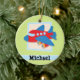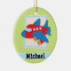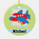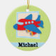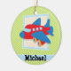 Ornamento De Cerâmica Avião em Verdes limões e faixas brancas