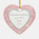 Esta bela Enfeites de natal é algo que uma neta sempre vai tesourar. Ele apresenta um fundo brilhante, cor-de-rosa, estrelado, com um coração central branco que é enquadrado em um padrão falho de diamante. O texto em cinzas prateadas e cor-de-rosa no centro diz "Avós são presentes de Deus". A parte de trás do ornamento tem o mesmo fundo, coração e quadro, com mais campos de texto para personalizar. *Observe que a imagem é impressa e o produto não contém material de brilho ou joias.