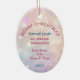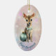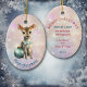 Aqui está um lindo ornamento de manutenção para o primeiro Natal daquele neto ou neta muito especial. A frente tem uma imagem de uma adorável querida afada vestindo um arco azul-lacrimogêneo e sentada com uma bonito lâmpada de árvore. A imagem é colocada sobre um fundo rosa claro e lavanda do livro. Há um campo de texto personalizado na parte inferior que atualmente diz "Primeiro Natal", mas você pode mudar o texto ou removê-lo completamente, se quiser. A parte de trás do ornamento tem o mesmo plano de fundo, com campos de texto para personalização. Faça-o dizer o que quiser!