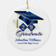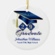 Este ornamento de manutenção apresenta boné azul e dourado e tassel em escudos de diamante com seu ano de graduação, diploma, nome e escola. Faz um presente de excelente nesta temporada de festas. É fácil personalizar com opções personalizadas.