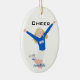 Ornamento De Cerâmica Azul e branco louro do cheerleader