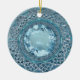 O ornamento cerâmico redondo com uma imagem, em ambos os lados, de fabuloso vidro azul cortado com um centro topaz azul. Veja toda a coleção Sob o Ornamento do Mar nos TOUCHES ESPECIAIS | Seção Favoritos para festas.