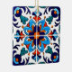 Padrão floral branco e azul estilizado, com toques de laranja, no estilo tradicional de Talavera