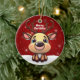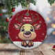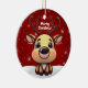 Celebrate the holiday season with this red festive oval ceramic ornament featuring an endearing woodland forest animal cartoon graphic of a cute baby deer with poinsettia flowers tucked in the fawn's ear, and Merry Christmas written in white. Perfect for decorating your tree or as a thoughtful gift, this whimsical floral doe decor makes a cherished keepsake for years to come. Customize by changing the text, the font, the font color, or remove the text. You can even transfer this design onto other products. Enjoy this design your way! Check out ForestBabies Xmas Deer Collection for matching decorations. 🎄🦌