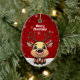 Celebrate the holiday season with this red festive oval ceramic ornament featuring an endearing woodland forest animal cartoon graphic of a cute baby deer with poinsettia flowers tucked in the fawn's ear, and Merry Christmas written in white. Perfect for decorating your tree or as a thoughtful gift, this whimsical floral doe decor makes a cherished keepsake for years to come. Customize by changing the text, the font, the font color, or remove the text. You can even transfer this design onto other products. Enjoy this design your way! Check out ForestBabies Xmas Deer Collection for matching decorations. 🎄🦌