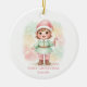 Ornamento De Cerâmica Baby Girl First Christmas Pink Elf Photo