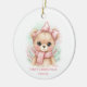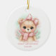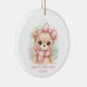 Ornamento De Cerâmica Baby Girl First Christmas Pink Teddy Bear Photo