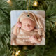 Este ornamento cerâmico é mostrado aqui com uma amostra de impressão de fotografia infantil. Personalize e personalize este item com a foto do seu filho com este modelo.
