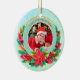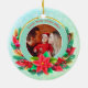 Celebrate a milestone with this stunning personalized photo Christmas ornament! Featuring a gorgeous teal background with sparkling gold accents and a festive wreath of poinsettias, holly, and candy canes, this ceramic ornament is the perfect way to display a treasured photo of your baby in their Santa outfit. Personalize it with the year ("20xx") to commemorate your little one's very First Christmas. A beautiful keepsake for new parents or a thoughtful gift for grandparents.