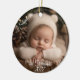 Celebrate a baby's precious first Christmas with this adorable ornament. Featuring a personal photo and date, it's a timeless keepsake for new parents and families. The soft, elegant aesthetic complements any festive decor, marking a cherished milestone.