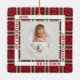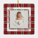 Ornamento De Cerâmica Baby's First Christmas Photo Plaid