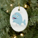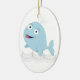 Uma baleia azul saltando da água. Personagem de desenho animado.