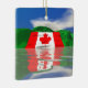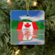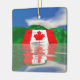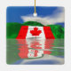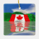 Ornamento com minha imagem original de uma bandeira canadense gigante sobre colinas verdes, refletida no lago.