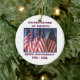 250º Aniversário 1776 a 2026, Estados Unidos da América, Enfeite de Árvore de Natal. Um grande marco para os EUA, América 250! Foto de bandeiras americanas tremulando ao vento e texto patriótico tornam este um lindo souvenir - um evento único na vida! Lindo enfeite de cerâmica para o Natal. Todos os Direitos Reservados © 2025 Alan & Marcia Socolik.