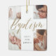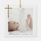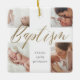 Celebrate a special baptism with this elegant calligraphy photo collage baby keepsake ceramic ornament, inspired by our best-selling invitation design and thoughtfully reimagined as a timeless keepsake. The front features a modern four-photo layout arranged in the shape of a cross, with “Baptism” beautifully highlighted in elegant faux gold calligraphy. The back showcases a coordinating faux gold cross, an additional photo, and the baptism date—creating a meaningful memento to cherish for years to come. Design by ©Moodthology Papery