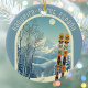 Ornament from a wonderful skiing holiday in the beautiful mountains of Baqueira-Beret Spain España ski area! This Ornament features an arch with a stunning blue-grey mountain landscape and retro ski boards in an orange tribal pattern in the foreground. The rest is in a lovely light blue tone with the location lettering in a modern font. The design is a lovely combination of retro and modern, and I hope you enjoy it!