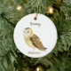 A watercolor of a lovely Barn Owl adorns this customizable Christmas ornament! Personalize by changing the text as you wish!