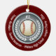 Celebrate your favorite baseball player with this personalized baseball ornament. Perfect for school teams, proud parents, and sports fans, this custom silver gray and red ceramic ornament brings team spirit to your holiday décor.