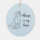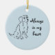 Lembre-se de um amigo Beagle especial com este adorável ornamento e seu esboço de cachorro. "Sempre no meu coração" é o slogan ao lado desse desenho de tinta fofa, e no verso você pode personalizar o texto com o nome e as datas do seu próprio cachorro. Mais personalização é possível com a cor do ornamento também.