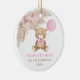 Este Enfeites de natal adorável apresenta um ursinho bonito segurando um balão rosa empoeirado. Mostra também alguns elementos tradicionais da boêmia em cores castanho, rosa e creme. Personalize o ornamento com os detalhes do seu bebê e, se quiser reorganizar o estilo e posicionamento do texto, pressione o botão "Clique para personalizar mais".