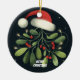Ornamento De Cerâmica Bebê Foto de Natal Mistletoe Robin Wreath