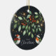 Uma ilustração perfeitamente detalhada da coroa das festas, composta por várias folhas e ramos verdes, enfeitados com bagas vermelhas brilhantes. A coroa apresenta folhagem embaçada, sagrada, e verde-esverdeada com sotaques de iluminação sutis, dando-lhe uma sensação festiva e elegante. O design é delicado, mas vibrante, perfeito para decorações de Natal ou trabalho de arte sazonal. Mude a foto e o nome para o seu querido bebê e tenha um presente de ornamento de árvore da família festiva!