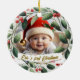Ornamento De Cerâmica Bebê Foto de Natal Mistletoe Robin Wreath