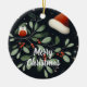 Uma ilustração muito detalhada da coroa das festas, composta por várias folhas e ramos verdes, enfeitados com bagas vermelhas brilhantes e robins bonitos. A coroa apresenta folhagem embaçada, sagrada, e verde-esverdeada com sotaques de iluminação sutis, dando-lhe uma sensação festiva e elegante. O design é delicado, mas vibrante, perfeito para decorações de Natal ou trabalho de arte sazonal. Mude a foto e o nome para o seu querido bebê e tenha um presente de ornamento de árvore da família festiva!
