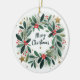 Ornamento De Cerâmica Bebê Foto de Natal Mistletoe Wreath
