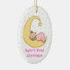 Ornamento De Cerâmica Bebê Garota na Lua Primeira Ornação de Natal