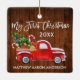 Escrita em Pincel Moderna Meu Primeiro Ornamento de Natal para Bebê inclui Watercolor Vintage Red Truck com Árvores de Natal, Neve, Presentes de Natal e Canes Doces. Impressão de madeira rustica.