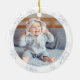 Um gnomo de aquarela agudo e giro acentua a foto do seu bebê entitulada com o PRIMEIRO NATAL DO NOME, com um fundo de flocos de neve azul de inverno e personalizado com nome e ano na frente e uma foto na parte de trás. DICA DA FOTO: Para obter os melhores resultados mais rápidos, escolha uma foto com o assunto no meio e/ou faça a pré-seleção em forma quadrada ANTES de fazer o upload. Entre em contato com o designer por meio do Zazzle Chat ou makeitaboutyoustore@gmail.com se você quiser que este design seja modificado ou ajude a transferi-lo para outro estilo de ornamento ou outro produto.