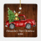 O Primeiro Caminhão Vermelho Vintage, Vintage, de Vaquinha de Natal, com Tree e Baby Moose Ornament. Adicionar Nome. Impressão de madeira.