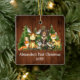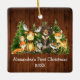 O Primeiro Ornamento de Animais Florestais de Floresta de Cerrado de Natal do bebê. Os bebês incluem Urso, Veado, Moose, Raccoon, Coelho Coelho, Raposa e Coruja com verde florestal e impressão de madeira. Adicionar Nome. Foto de volta.