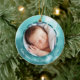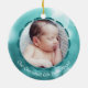 Ornamento De Cerâmica Bebê Primeiro Natal Teal Bokeh Foto Personalizada