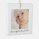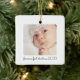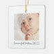 Celebre o primeiro Natal do seu bebê com este adorável ornamento personalizado. O design moderno e mínimo apresenta uma foto precioso do seu recém-nascido, fazer que seja uma marca única. Acrescente o nome do seu filho e o ditado "Primeiro Natal", juntamente com o ano, para criar uma lembrança carinhosa que trará alegria para os próximos anos. Este presente personalizado é perfeito para capturar a magia deste marco especial. Segure-o na sua árvore ou dê-lhe como um presente pensativo para comemorar esta ocasião inesquecível.